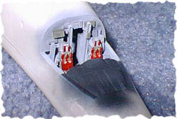 The original Monogram "lounge chairs" were removed and replaced with True Details resin Aces II Ejection seats. I scratch built many of the missing details in the cockpit from scrap styrene